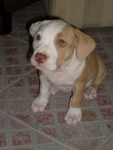 | Esta bonequinha é a Kayah, uma Pit Bull de 2 meses. |